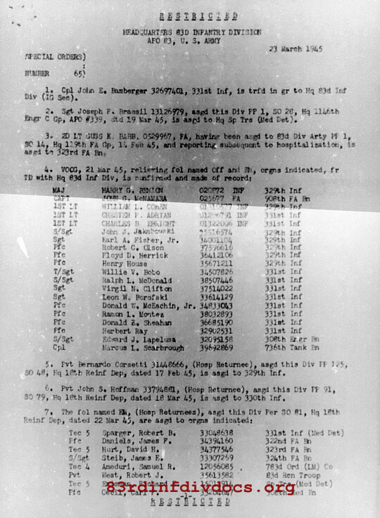 Morning report HQ/83 for March 23, 1945