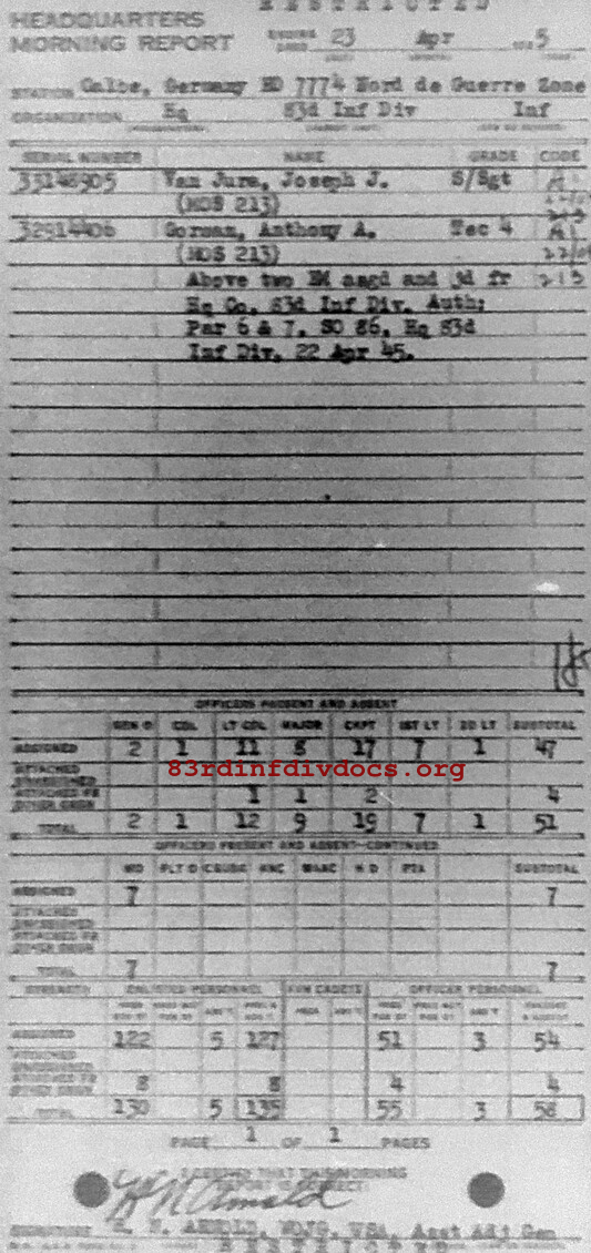 Morning report HQ/83 for April 23, 1945