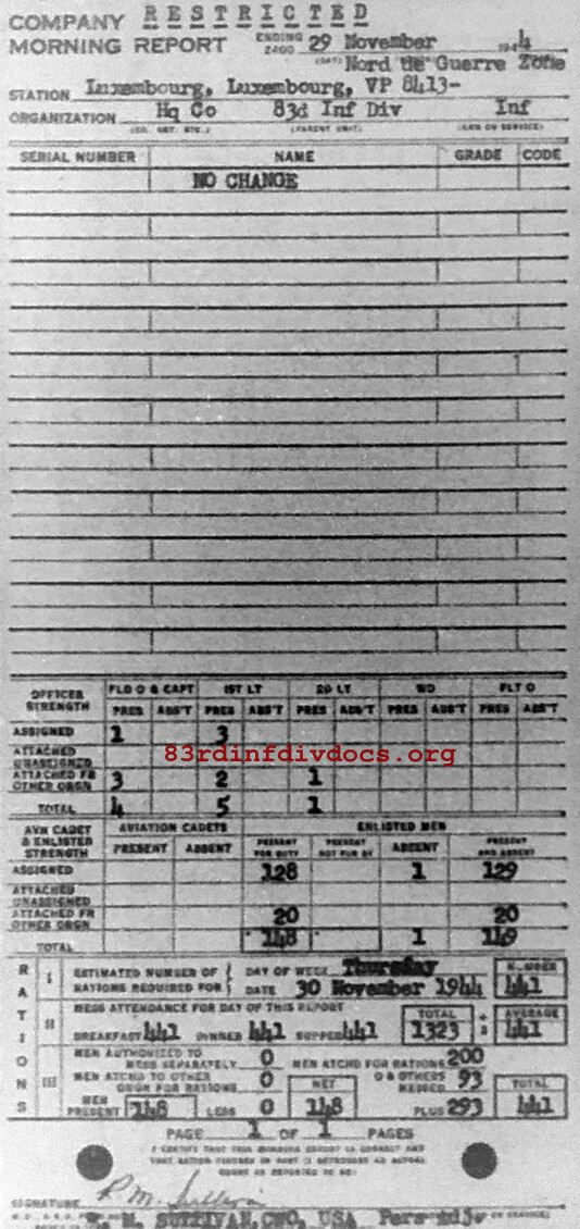 Morning report HQCO/83 for November 29, 1944