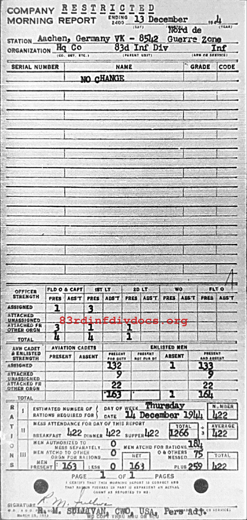 Morning report HQCO/83 for December 13, 1944