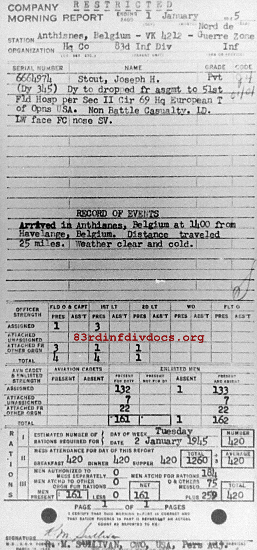 Morning report HQCO/83 for January 1, 1945