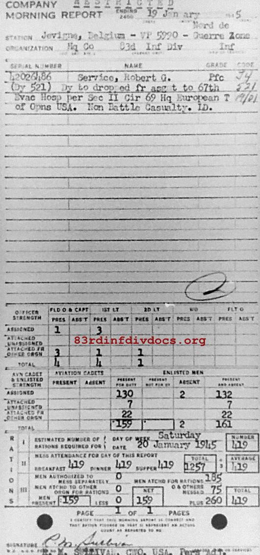 Morning report HQCO/83 for January 19, 1945