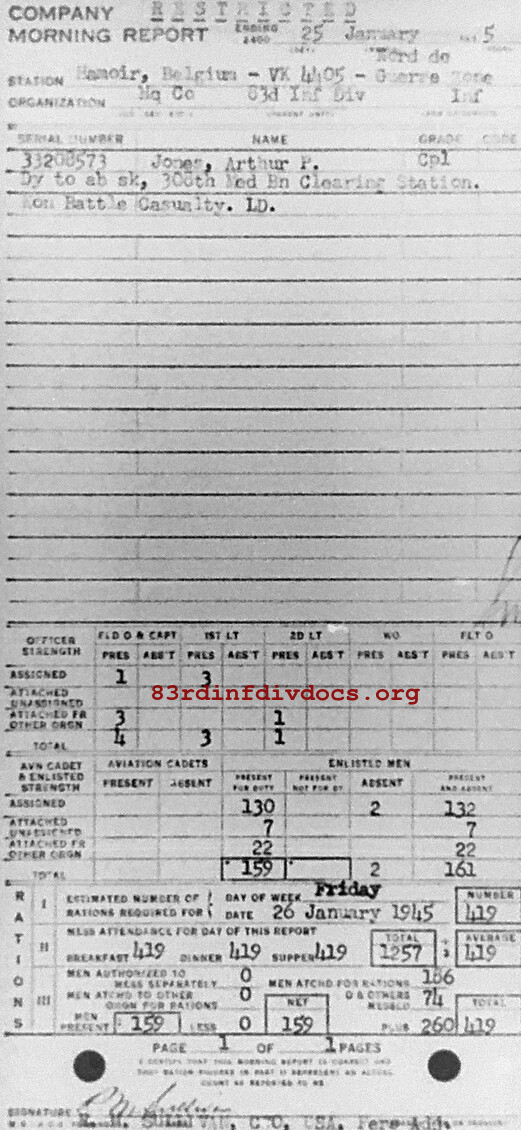 Morning report HQCO/83 for January 25, 1945