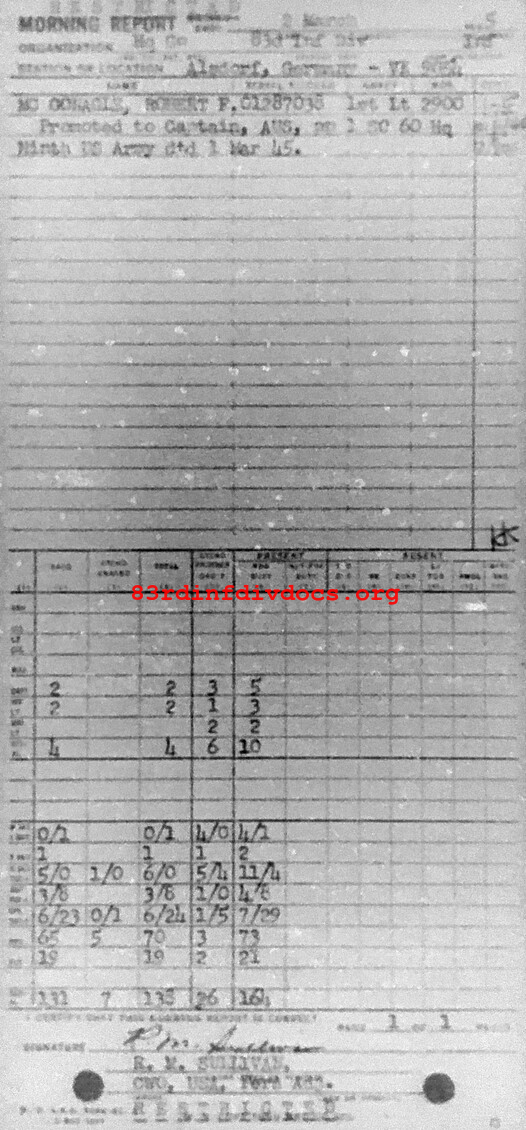 Morning report HQCO/83 for March 2, 1945