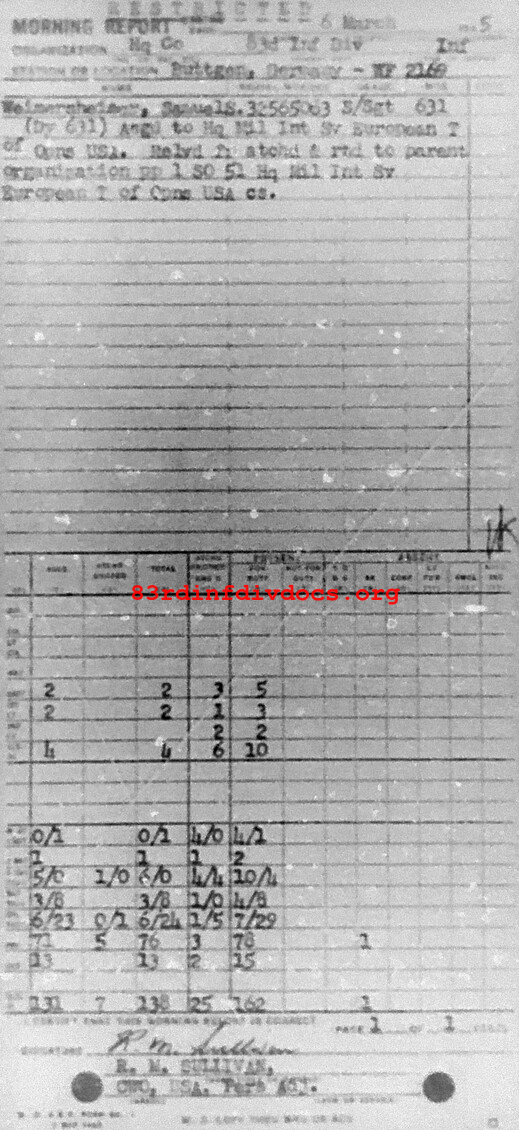Morning report HQCO/83 for March 6, 1945