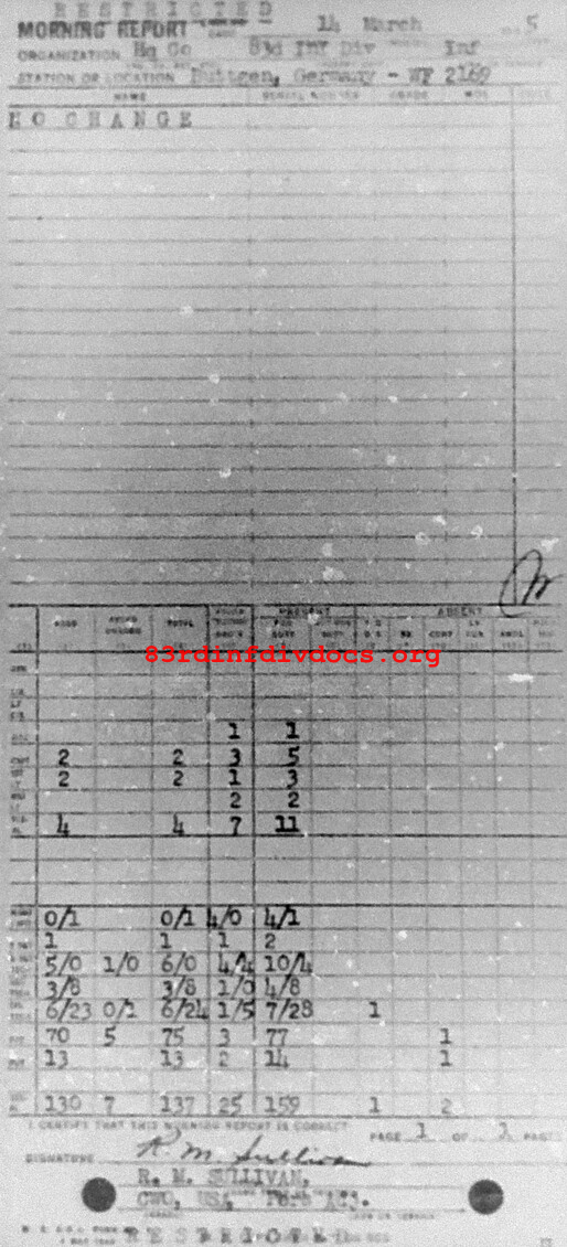Morning report HQCO/83 for March 14, 1945