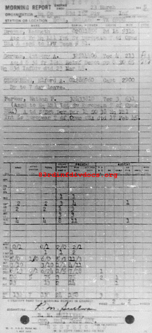 Morning report HQCO/83 for March 23, 1945