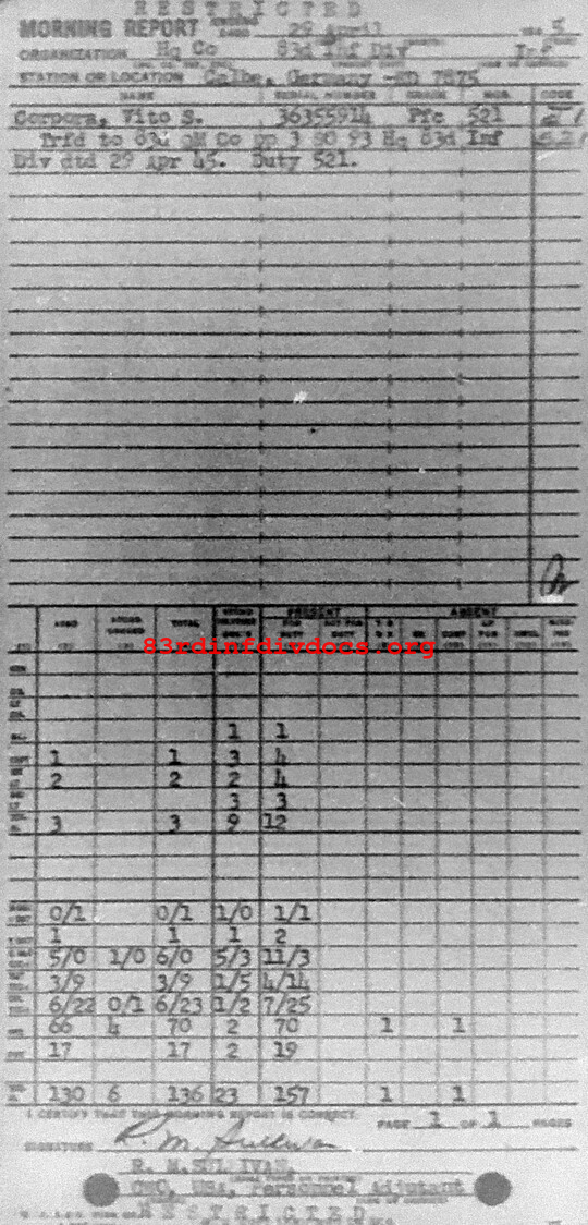 Morning report HQCO/83 for April 29, 1945