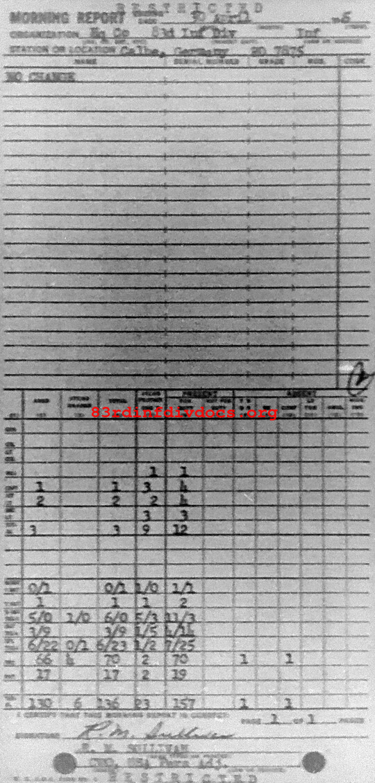 Morning report HQCO/83 for April 30, 1945