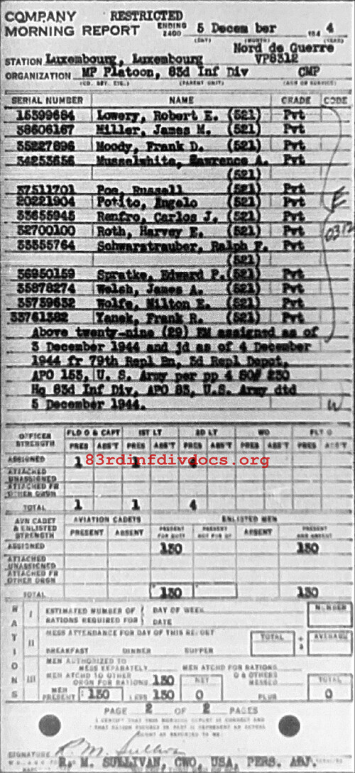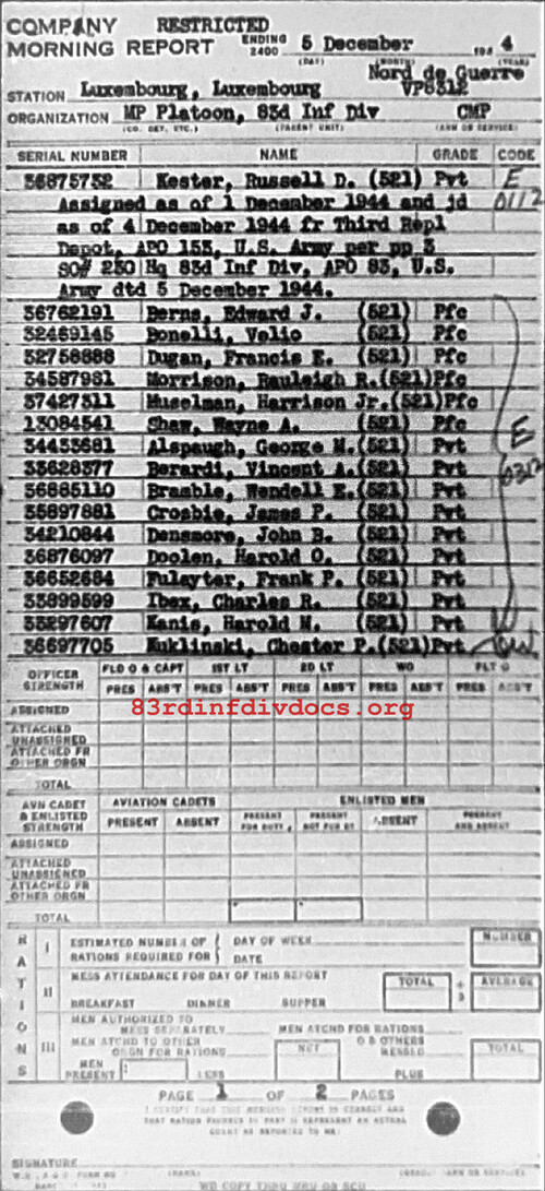 Morning report MP/83 for December 5, 1944