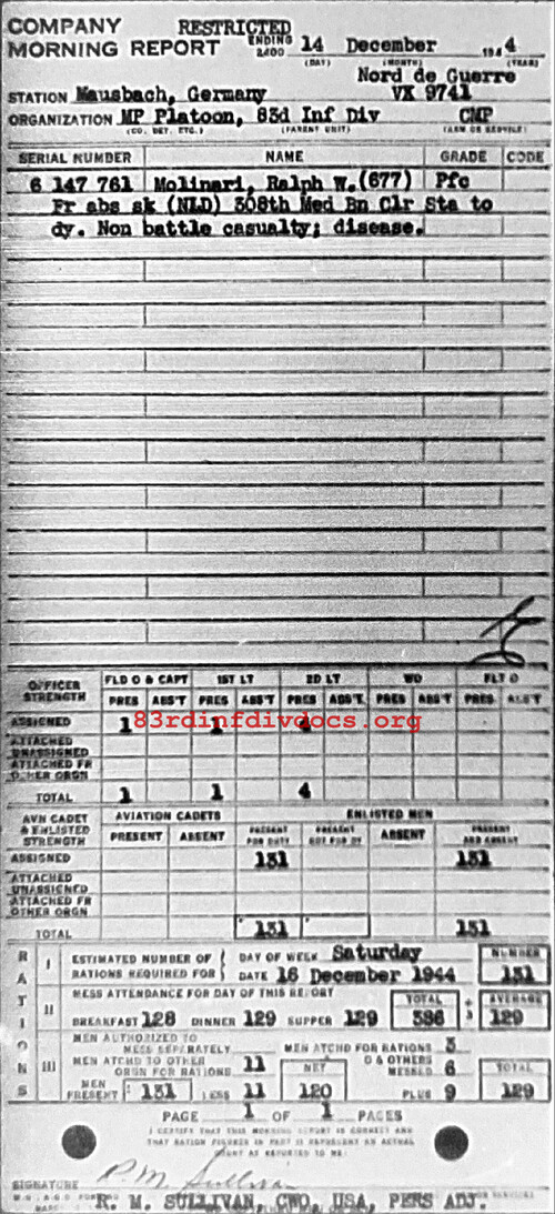Morning report MP/83 for December 14, 1944
