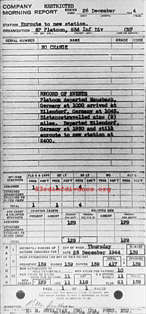 Morning report MP/83 for December 26, 1944