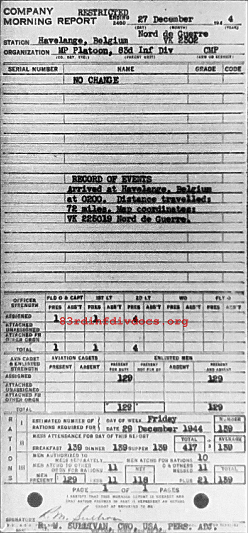 Morning report MP/83 for December 27, 1944
