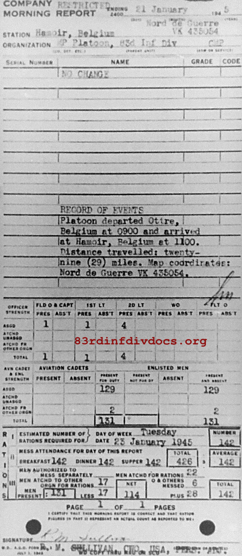 Morning report MP/83 for January 21, 1945
