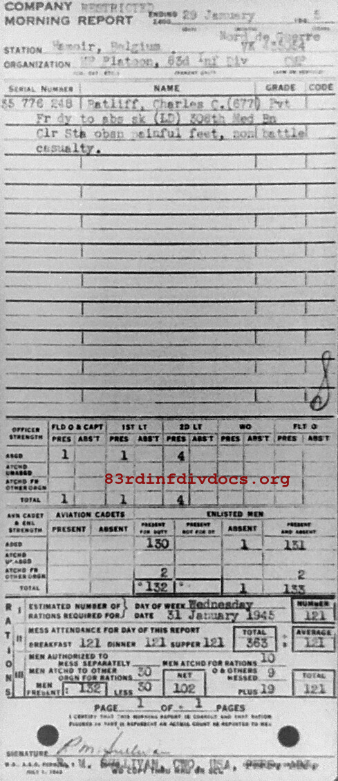 Morning report MP/83 for January 29, 1945