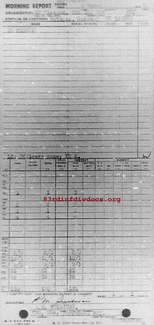 Morning report MP/83 for March 4, 1945