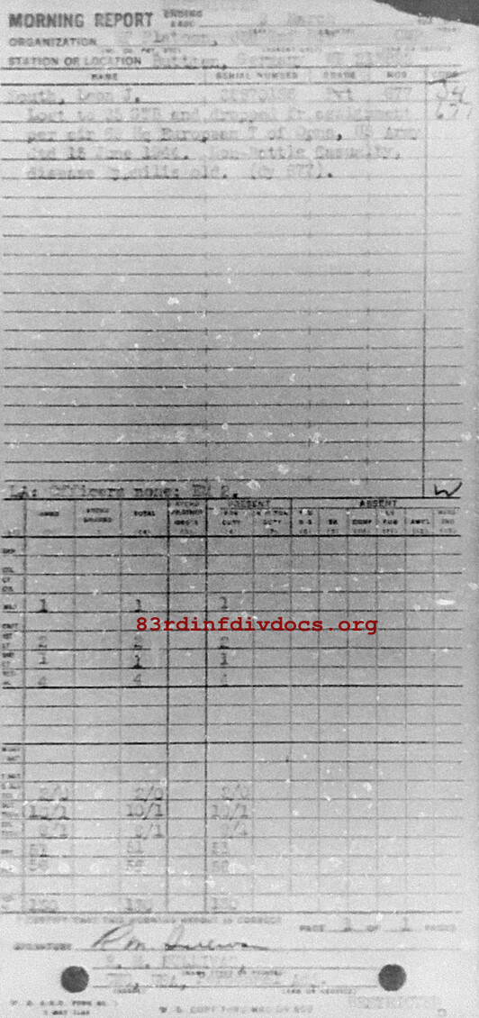Morning report MP/83 for March 9, 1945