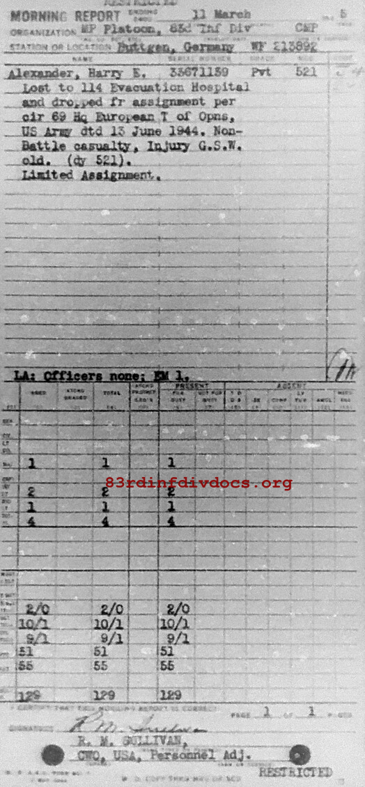 Morning report MP/83 for March 11, 1945