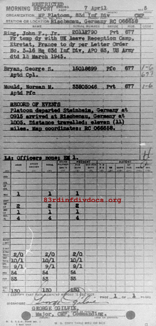 Morning report MP/83 for April 7, 1945