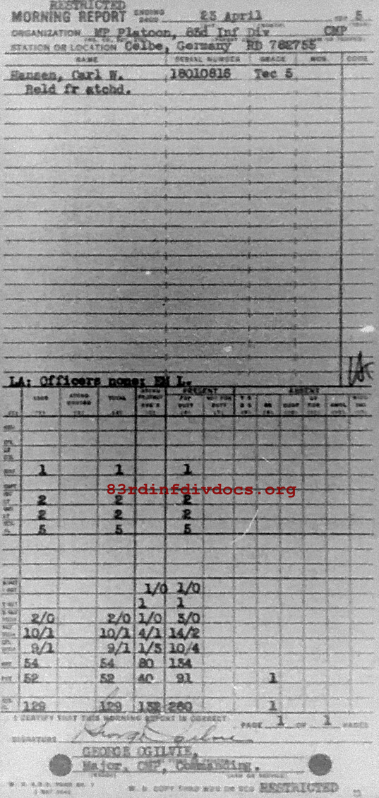 Morning report MP/83 for April 23, 1945