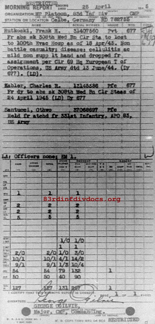 Morning report MP/83 for April 25, 1945