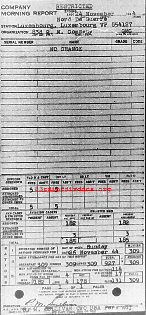 Morning report QM/83 for November 24, 1944