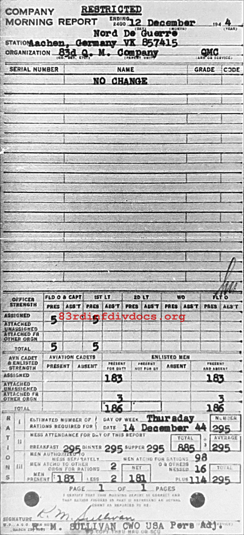 Morning report QM/83 for December 12, 1944