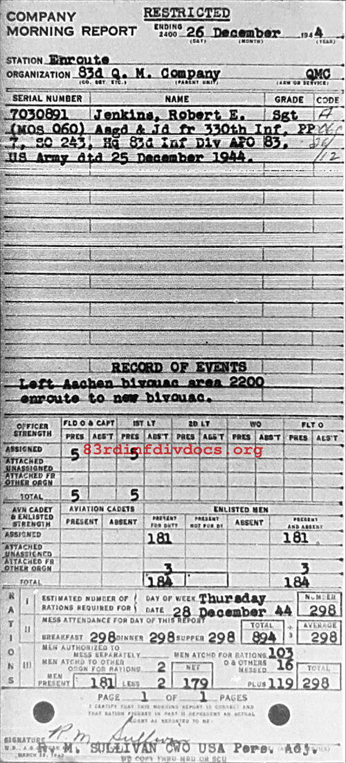 Morning report QM/83 for December 26, 1944