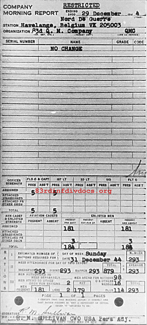 Morning report QM/83 for December 29, 1944