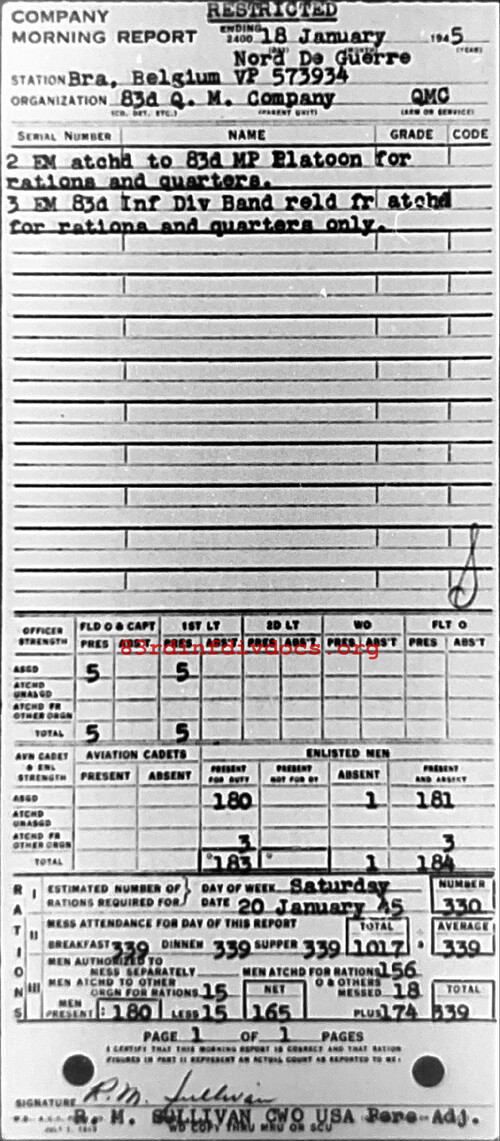 Morning report QM/83 for January 18, 1945