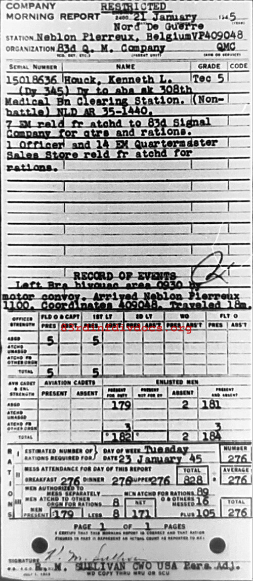 Morning report QM/83 for January 21, 1945