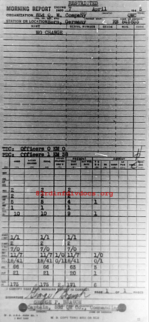 Morning report QM/83 for April 7, 1945