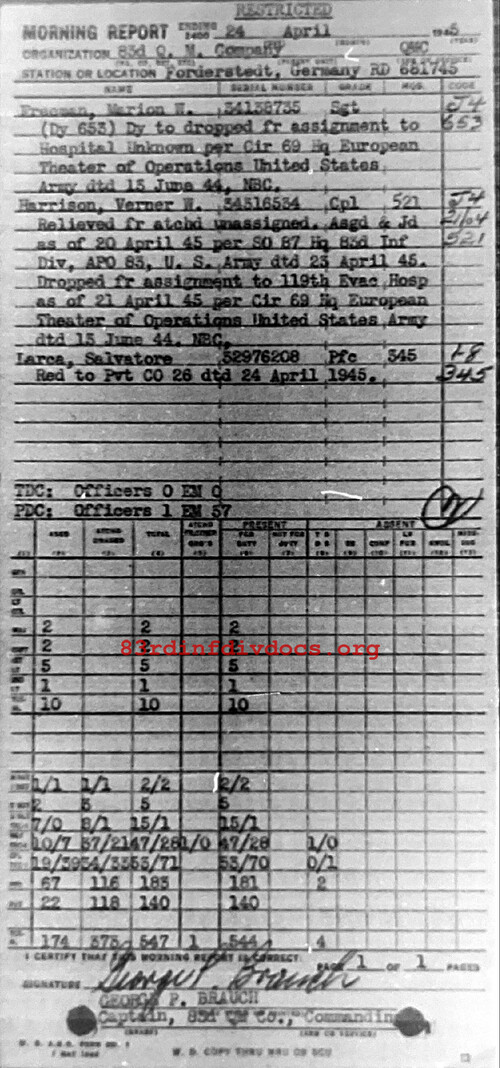 Morning report QM/83 for April 24, 1945