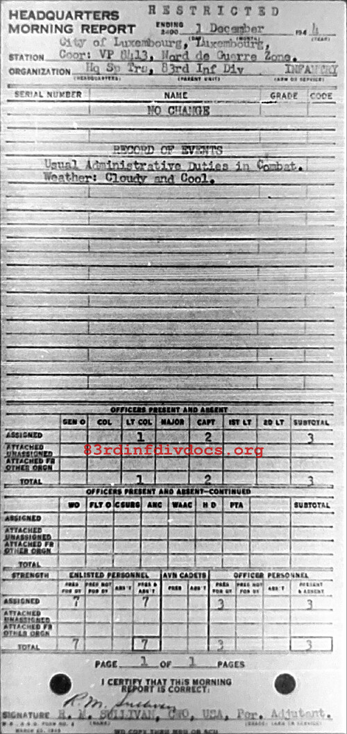 Morning report SPTRPSHQ/83 for December 1, 1944