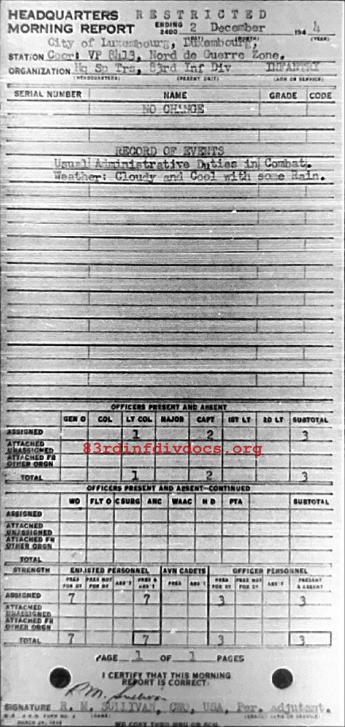 Morning report SPTRPSHQ/83 for December 2, 1944