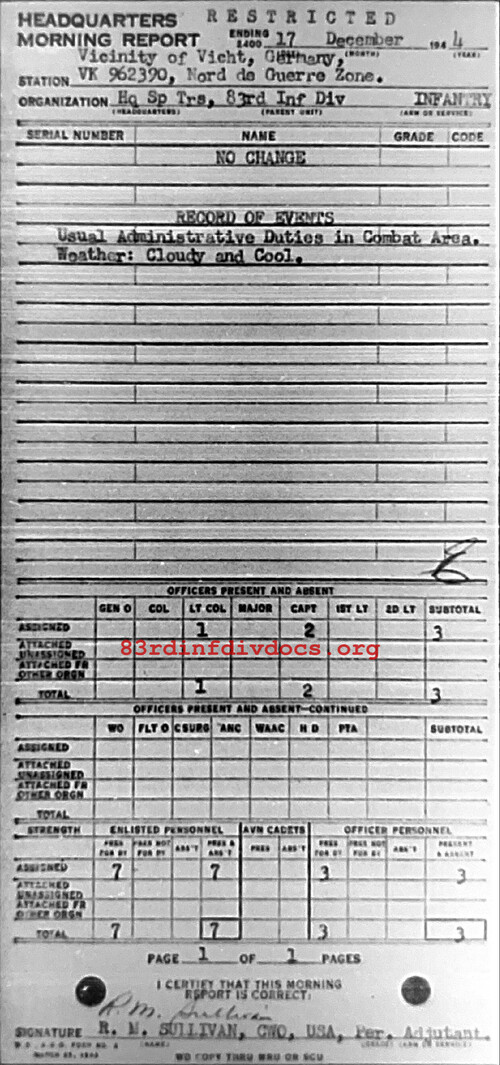 Morning report SPTRPSHQ/83 for December 17, 1944