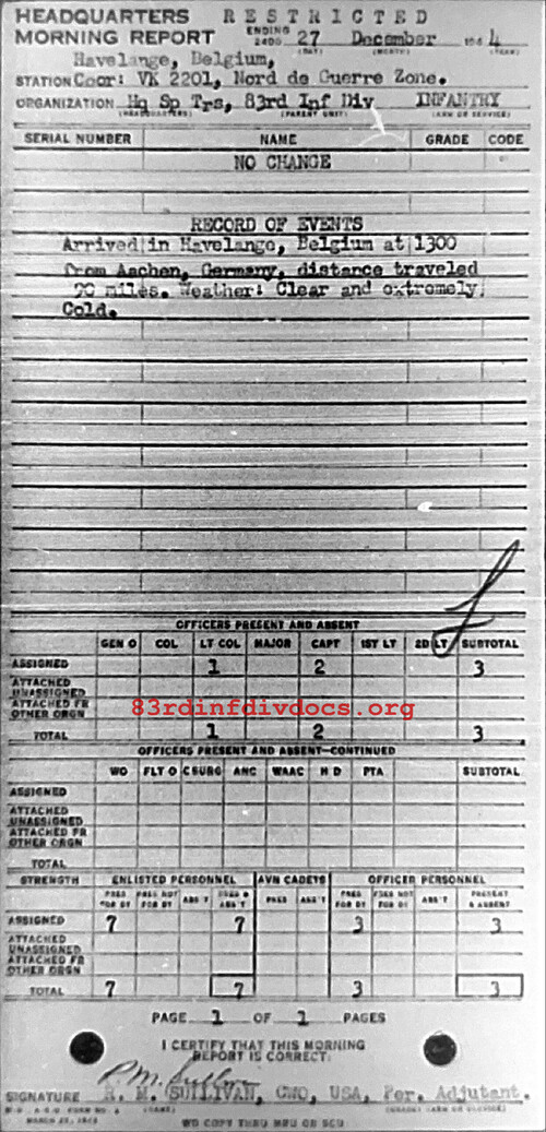 Morning report SPTRPSHQ/83 for December 27, 1944