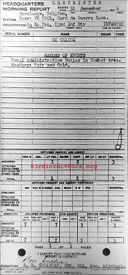 Morning report SPTRPSHQ/83 for December 31, 1944