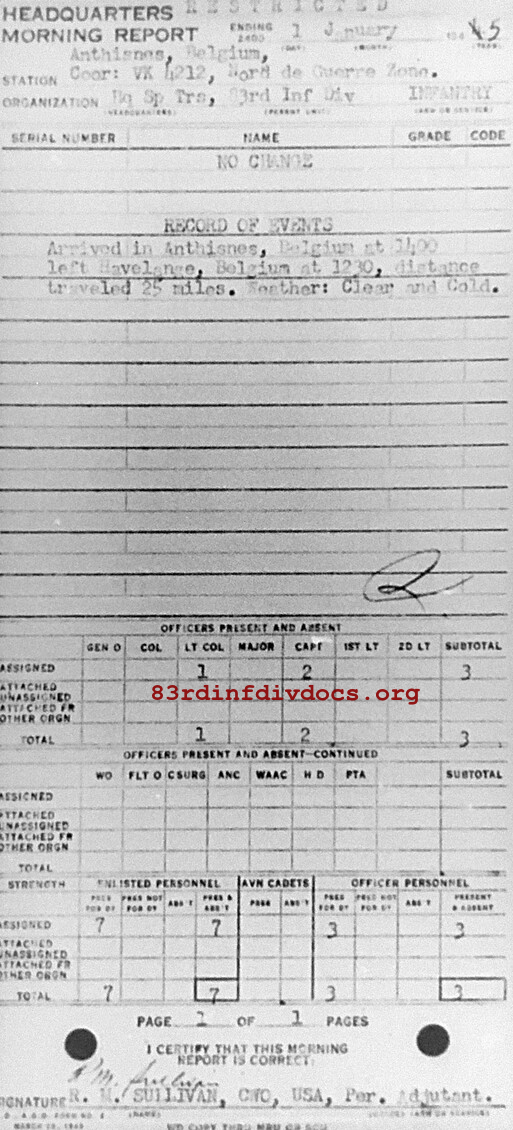 Morning report SPTRPSHQ/83 for January 1, 1945