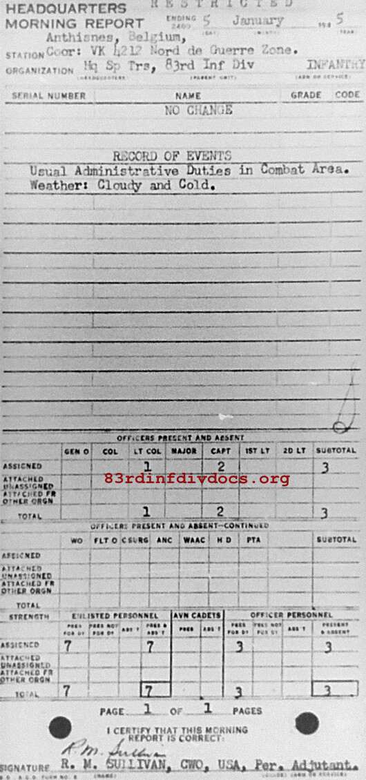 Morning report SPTRPSHQ/83 for January 5, 1945