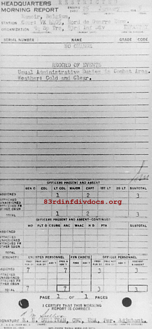Morning report SPTRPSHQ/83 for January 25, 1945
