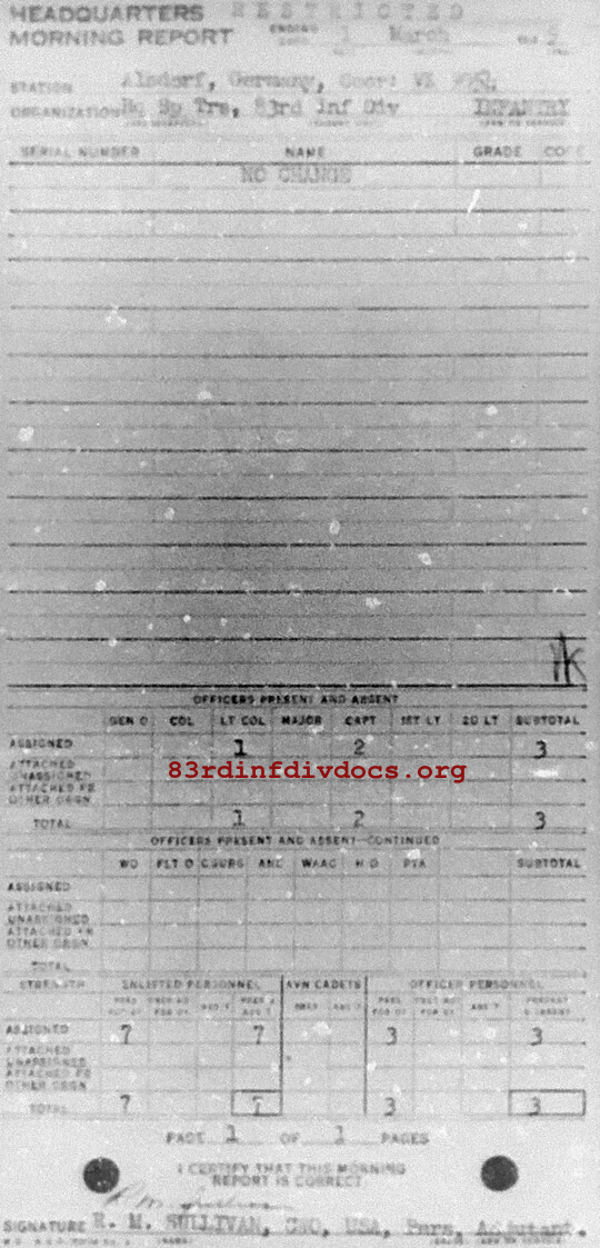 Morning report SPTRPSHQ/83 for March 1, 1945