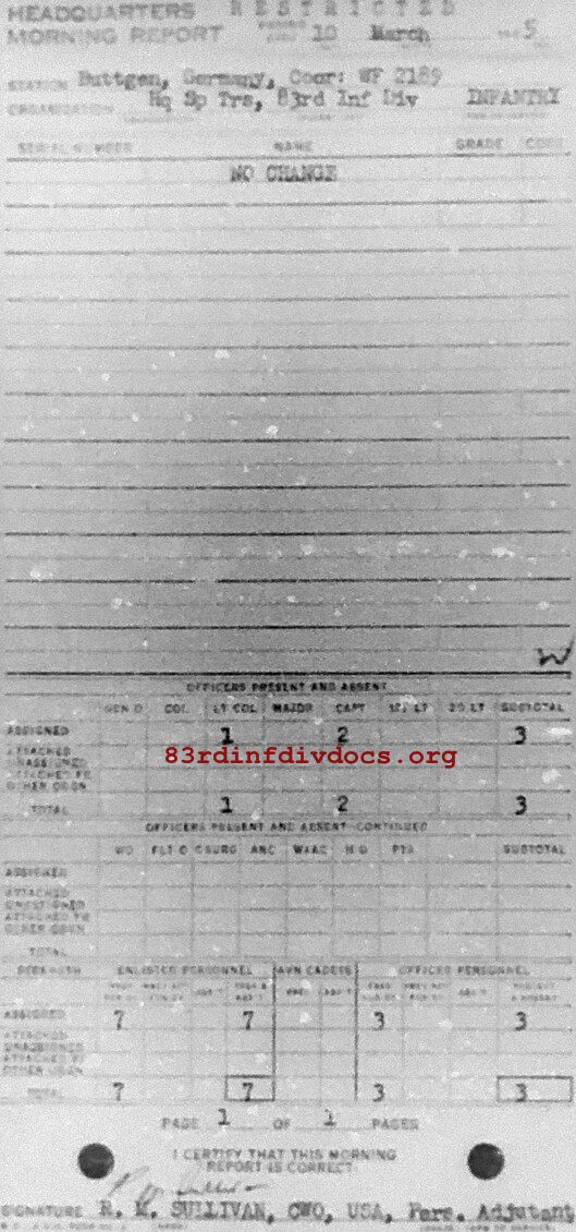 Morning report SPTRPSHQ/83 for March 10, 1945