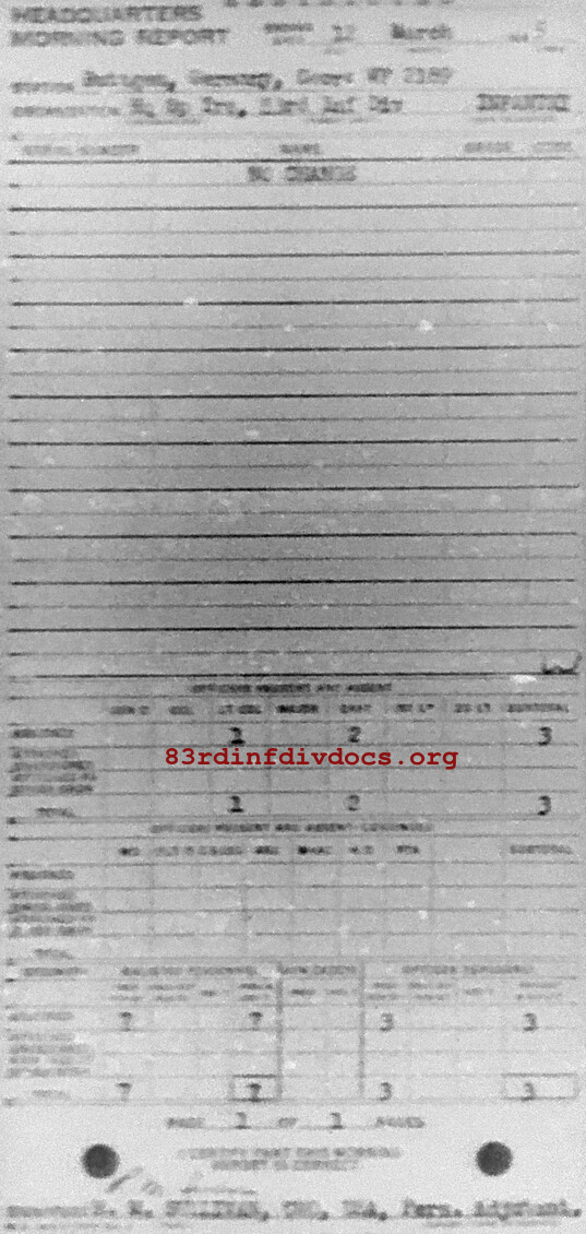Morning report SPTRPSHQ/83 for March 12, 1945