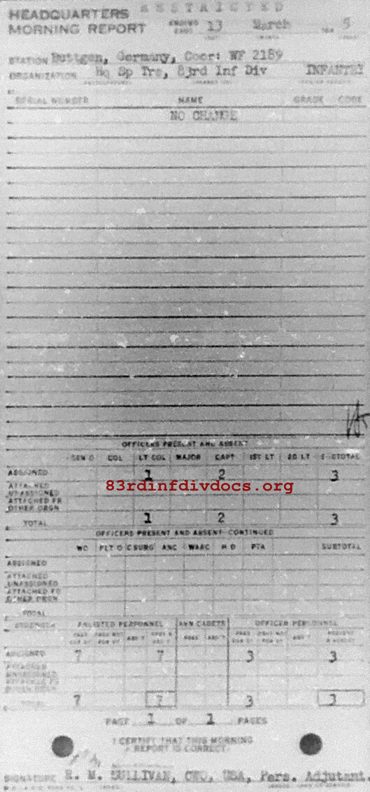 Morning report SPTRPSHQ/83 for March 13, 1945