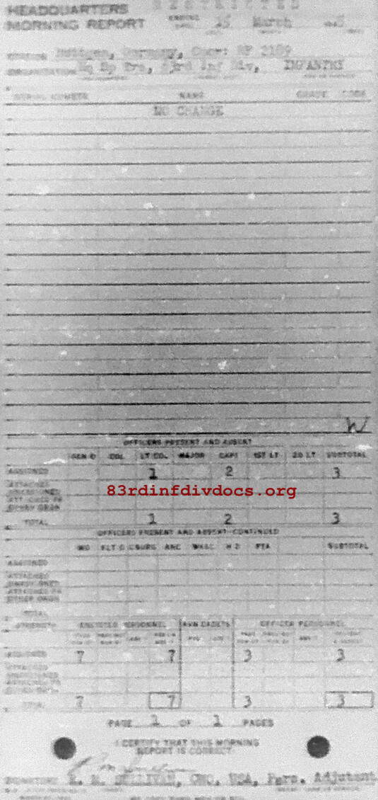 Morning report SPTRPSHQ/83 for March 15, 1945