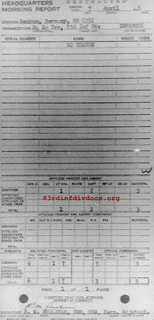 Morning report SPTRPSHQ/83 for April 7, 1945