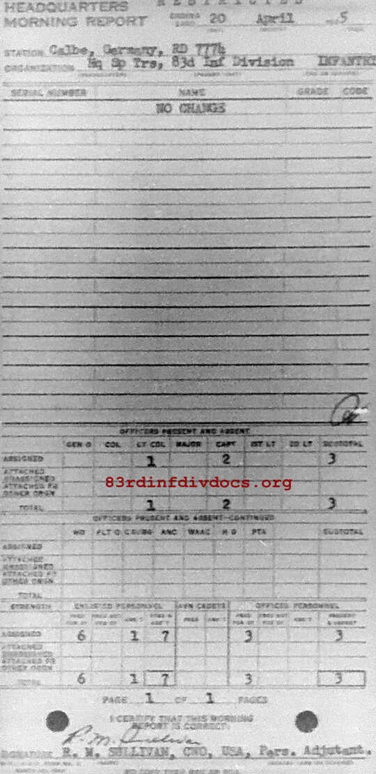 Morning report SPTRPSHQ/83 for April 20, 1945