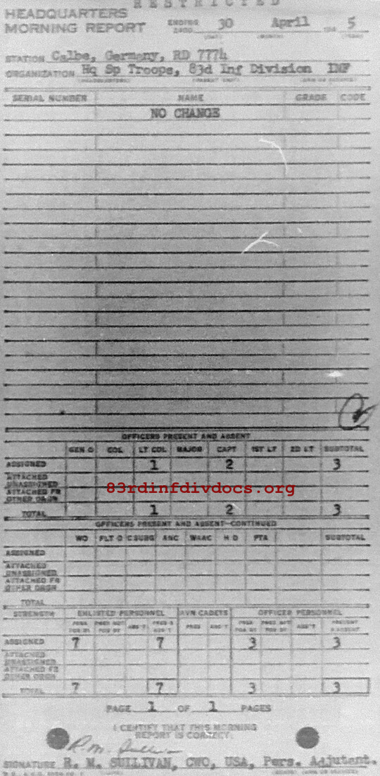 Morning report SPTRPSHQ/83 for April 30, 1945