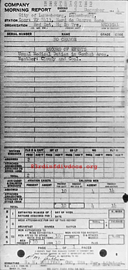 Morning report SPTRPSMEDDET/83 for December 5, 1944
